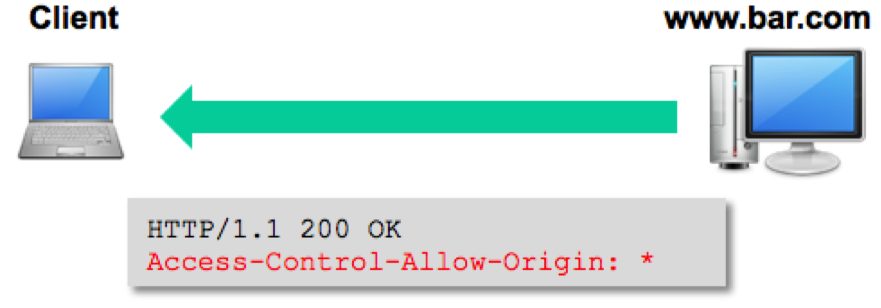 permitted. If it is permitted (or more likely not checked), it responds with a CORS header response and the requested resource. In this example, the www.bar.com website allows cross-site HTTP requests from any domain, which is indicated by the Access-Control-Allow-Origin: * response header.