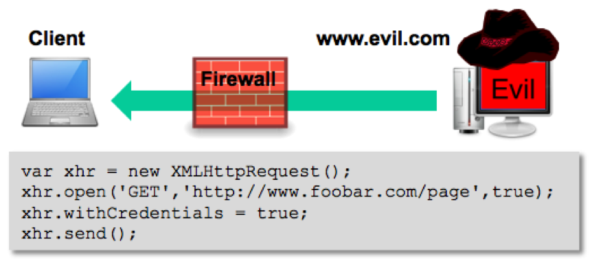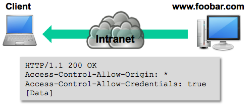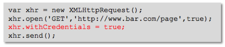 While the user is being entertained, the JavaScript makes a cross-site HTTP request to an internal web site; in this case it’s http://www.foobar.com/page. The ex-employee has included the withCredentials flag set to true so he can leverage any cookies that are already in the user’s browser to authenticate to the target site.