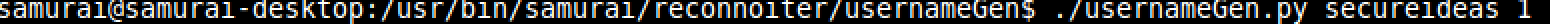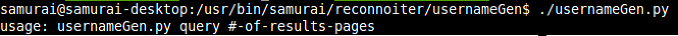 The second python script is a username generator. This is a great script that will generate usernames based on social media sites. The syntax of the script looks like this: