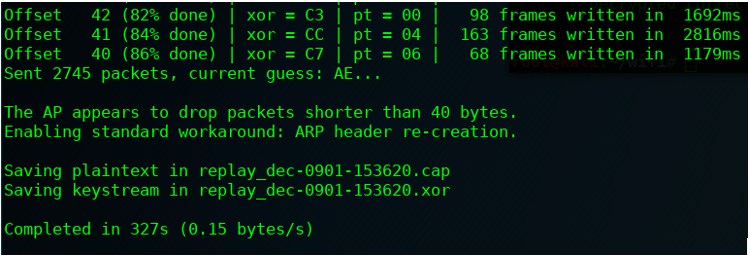 You’ll be looking for a successful .xor file that you can use with packetforge-ng and it’ll look similar to this: