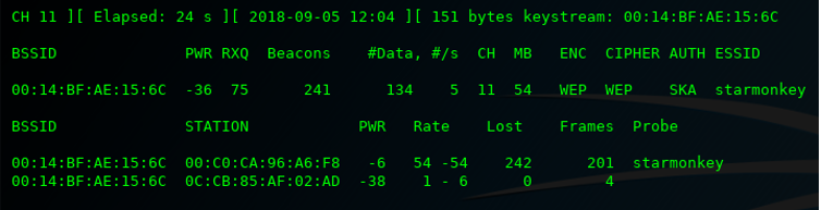 - You can start an airodump-ng capture and immediately try a fragmentation attack using the <VIC> MAC address in place of the usual <MON> MAC address: