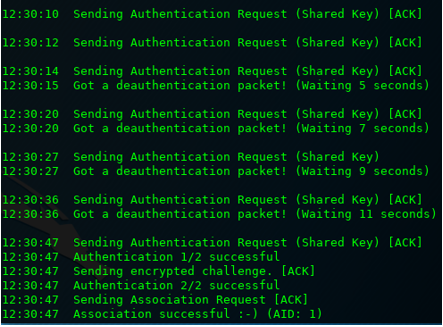 - Use Ctrl+C to stop the packet injection, the authentication, and the airodump-ng capture.
